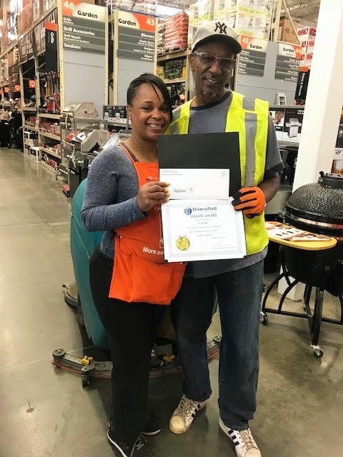 Lat month Eric Bell received a Bravo Award from Assistant Manager Tanisha at Home Depot 3662 in Charlotte for outstanding service. It’s people like Eric that help to make Diversified Maintenance such a successful, customer-focused company. Nice job!