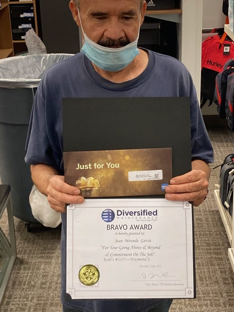 Juan Garcia and Loraine Astrop are our team at Kohl’s 1157 Grove City, Ohio. They are a fantastic team that always delivers an immaculate store when they are done with their shifts. We are very proud to have them with us! Juan and Loraine were presented with Bravo Awards to show our appreciation for everything they do to keep their store looking great. Congratulations, and thank you! Keep up the great work!