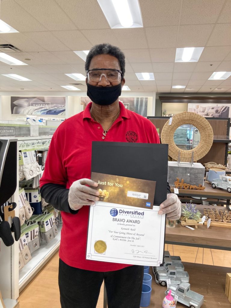 Kenneth Redd, a Diversified team member at Kohl’s, was nominated by the store personnel to receive recognition for his outstanding performance. He takes pride and ownership in his store, and he always does a fantastic job! Way to go, Kenneth! Keep up the great work – we appreciate all you do!