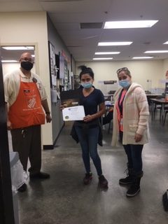 Maribel Etheridge received her Bravo Award for outstanding services, at Home Depot. Present were Store Manager Steven and Area Manager Evelixa De Leon Muriel. Congratulations, and thank you for all your hard work!