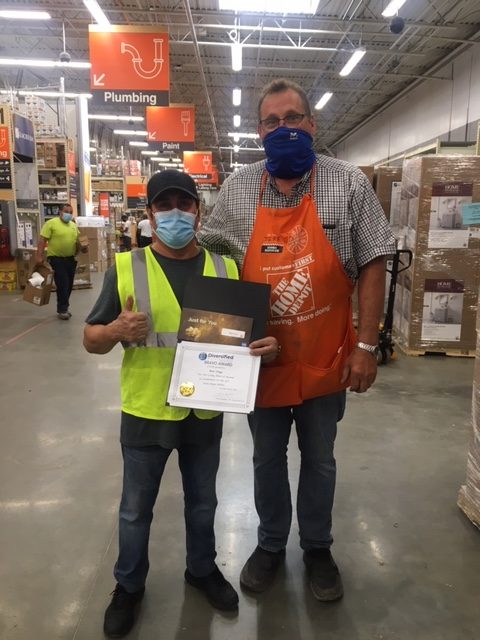 Our associate Rene Ortega received a Bravo award from Store Manager Jeff for outstanding service during the pandemic. He has been diligently keeping the store’s high-touch points disinfected and clean. Way to go, Rene, and thanks to all our brave people on the front lines helping customers every day!