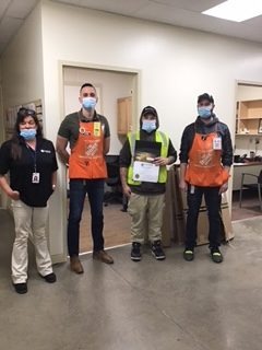 Assistant Area Manager Ray, Area Manager Lisa, and Store Manager Matt present Rusty with his Bravo Award for exceptional performance at his Home Depot store. Thanks for your dedication to getting the job done right!