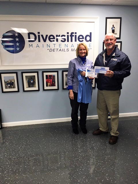 Tina Hamilton, the Alabama Division Administrator, recently celebrated her 15th year with Diversified Maintenance! In honor of her impressive achievement, she was presented her tenure award certificate and honorary tennis shirt by Alabama Division Manager Jay Perlstein. Congratulations, Tina! We are looking forward to another 15 years of your outstanding work.
