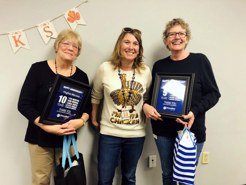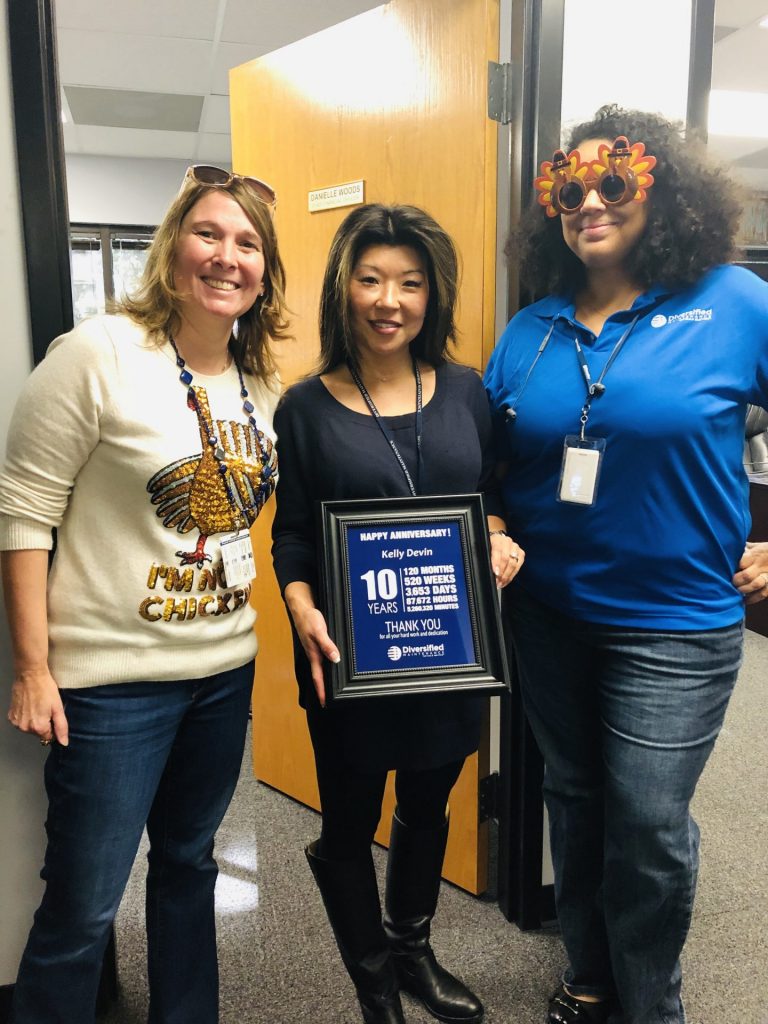 Virginia Mierzwa, Sabine Harb, and Kelly Devin received their 10 year and 5 year service awards from Danielle Woods as part of the annual Tenured Employee Recognition Program. This is an outstanding accomplishment! Way to go, and thank you for your dedication! We appreciate everything you do!