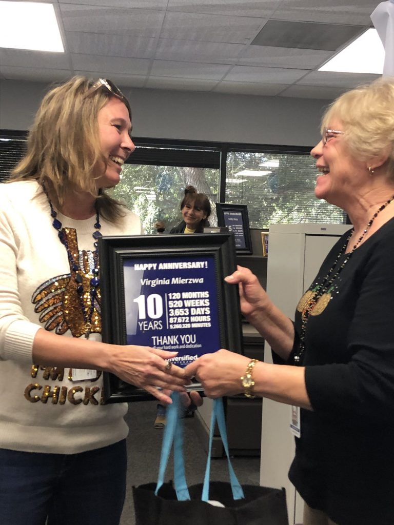 Virginia Mierzwa, Sabine Harb, and Kelly Devin received their 10 year and 5 year service awards from Danielle Woods as part of the annual Tenured Employee Recognition Program. This is an outstanding accomplishment! Way to go, and thank you for your dedication! We appreciate everything you do!