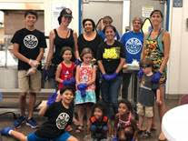 ↑ Elementary school children receive school supplies at the Confirm warehouse in San Diego. There were enough supplies for every child at the school!