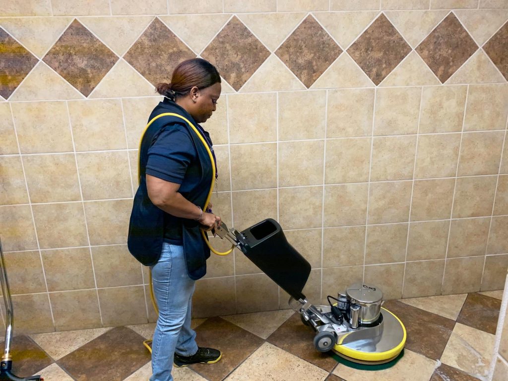Supervisor Nikki Morris is getting it done at Calvary Baptist Temple in Savannah, GA. She is seen here scrubbing the boys restroom using the GenEon heavy duty all purpose cleaner and degreaser. Yes – it works!